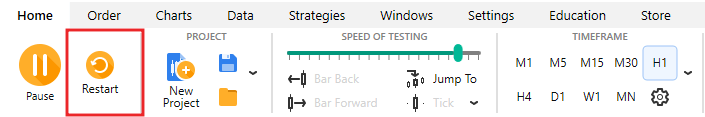 You can start a current project from the beginning at any time of testing by clicking the “Restart Project” button.