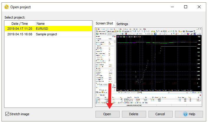 A project is a saved testing strategy with all its features inclusively. The project saves all its structure with orders, charts, and indicators placed on these charts. After the project opening, its entire saved features & elements will be restored.