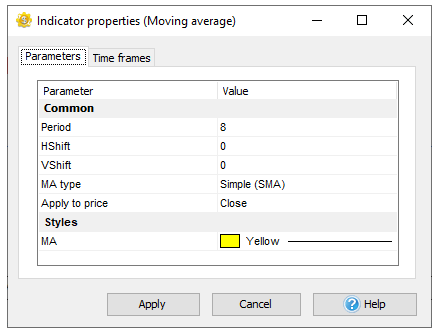 You will see the following dialog window where you can modify the indicator’s properties before it is placed on the chart.