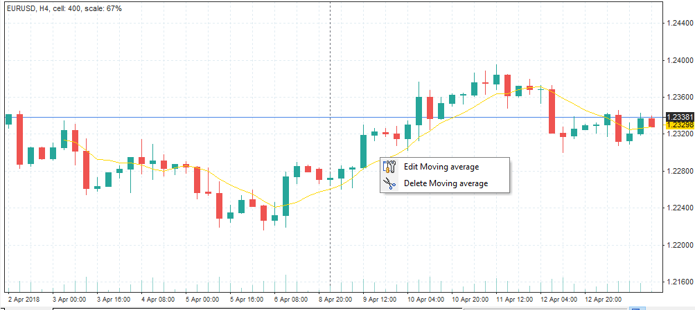 To edit the indicator on the chart, right-click on the indicator’s line and select the “Edit …” option. Use the “Delete …“ option to delete it.